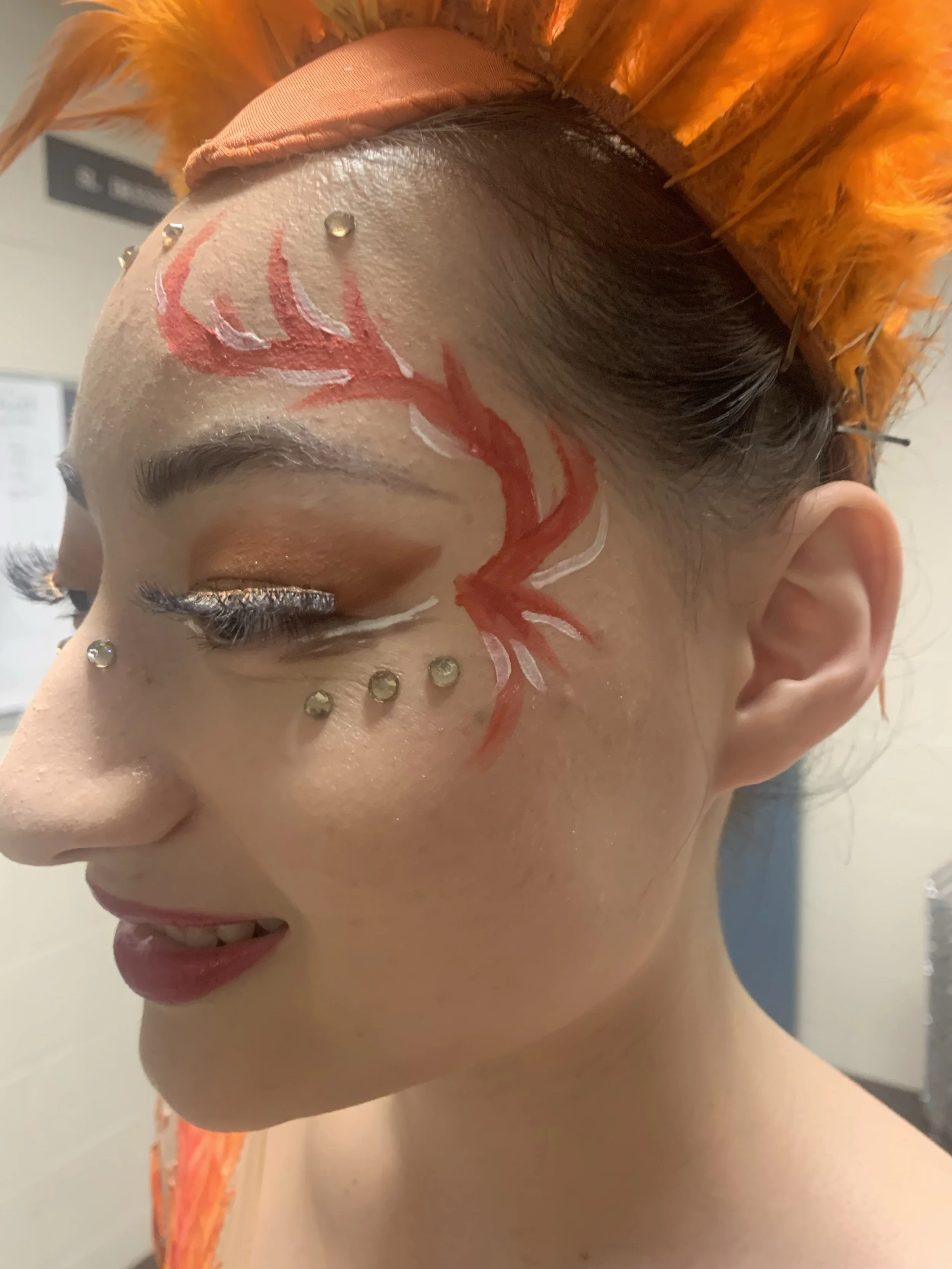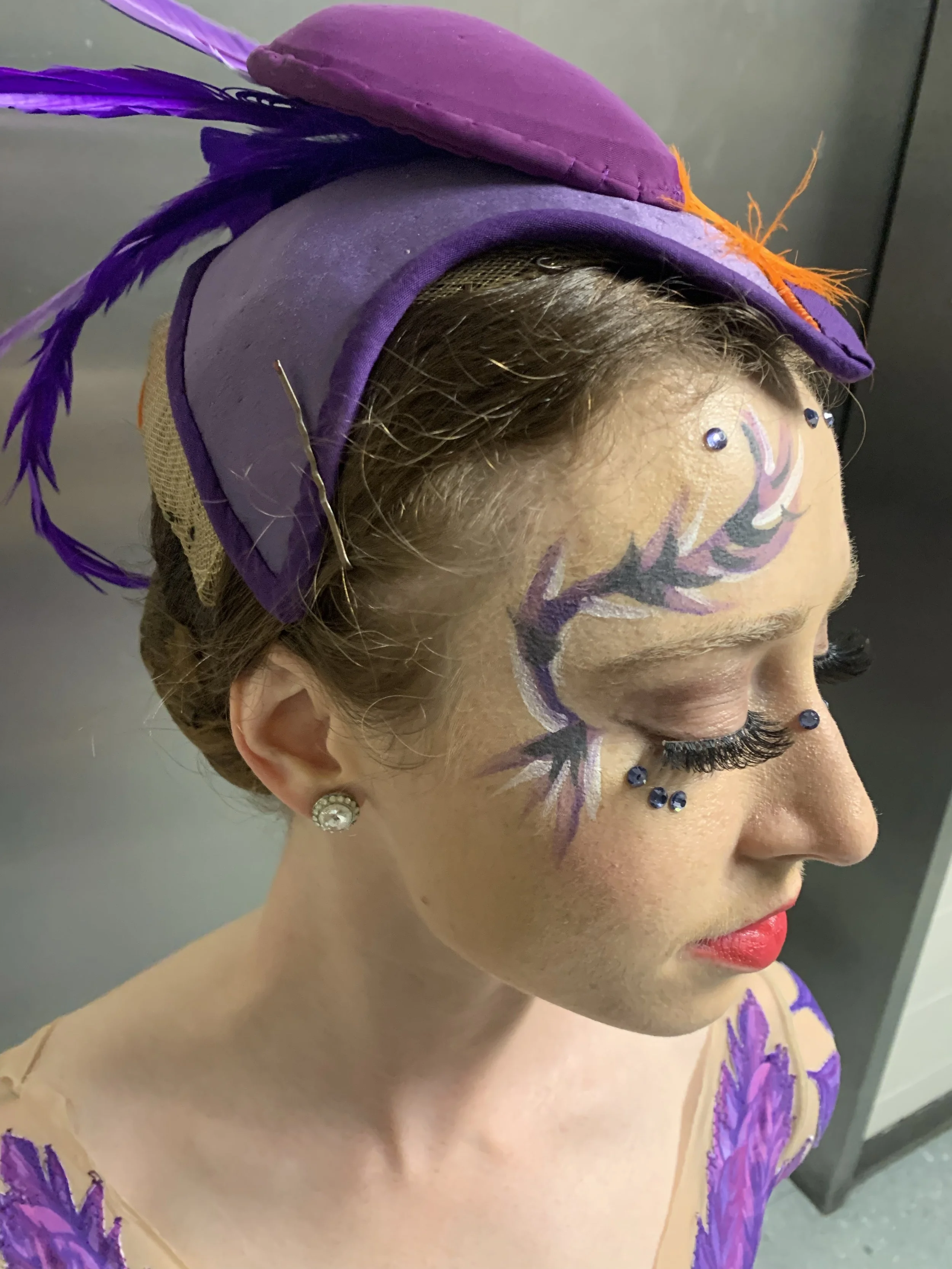 Makeup done during quick change using cream foundation sticks and water activated paints. Dancers: Garrett Wooten (left), Elye Bailey (right)